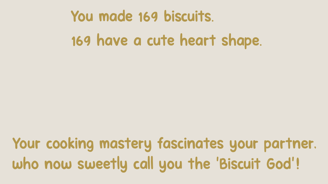 If you manage to keep less than 5 non heart-shaped biscuits while having more than 100 biscuits, you have a different ending... :o